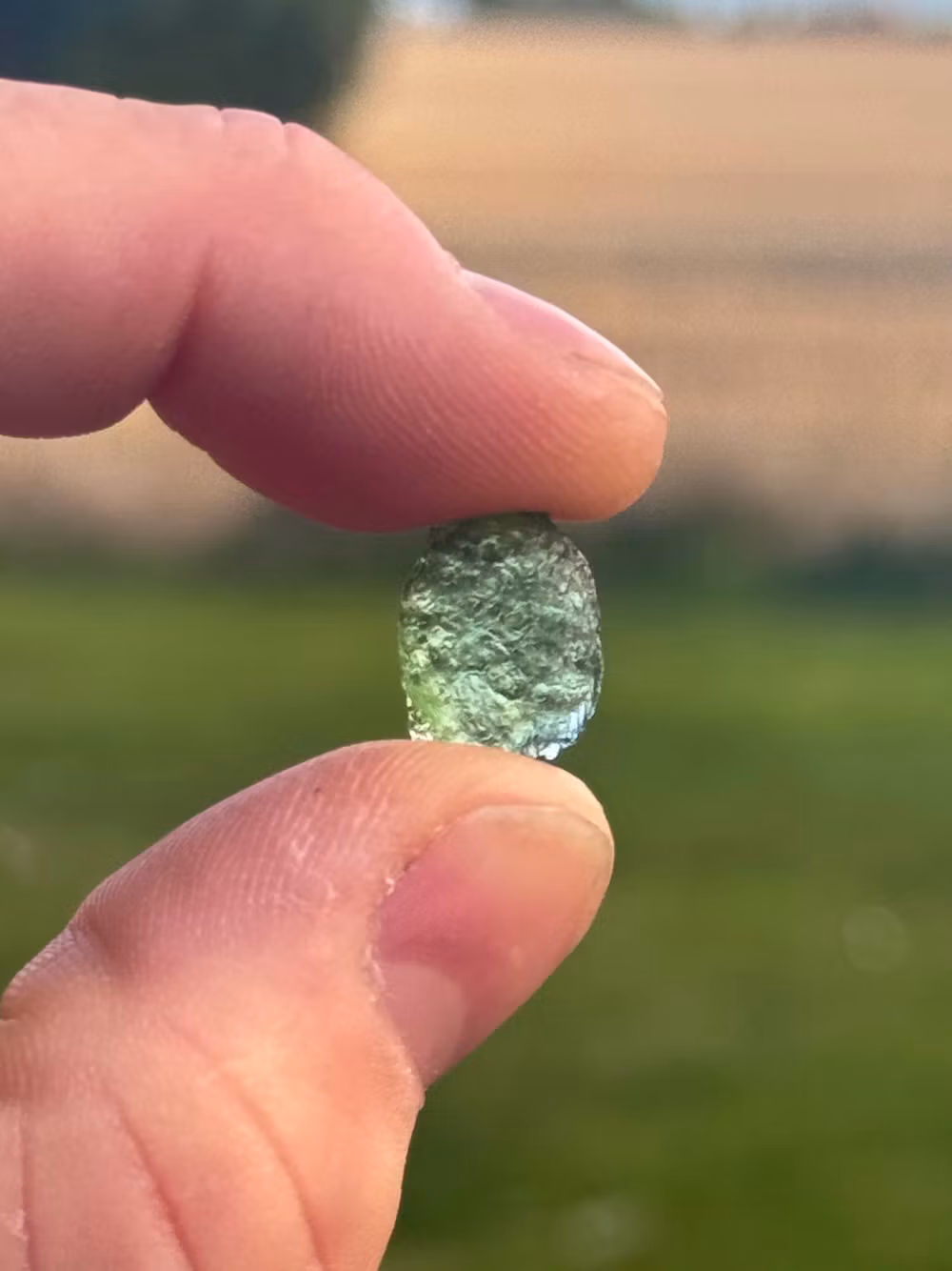 Den otroligt kraftfulla och mycket vackra Moldaviten, här i sin råa form, härstammar från ett meteoritnedslag i nuvarande Tjeckien för ca 15 miljoner år sedan.